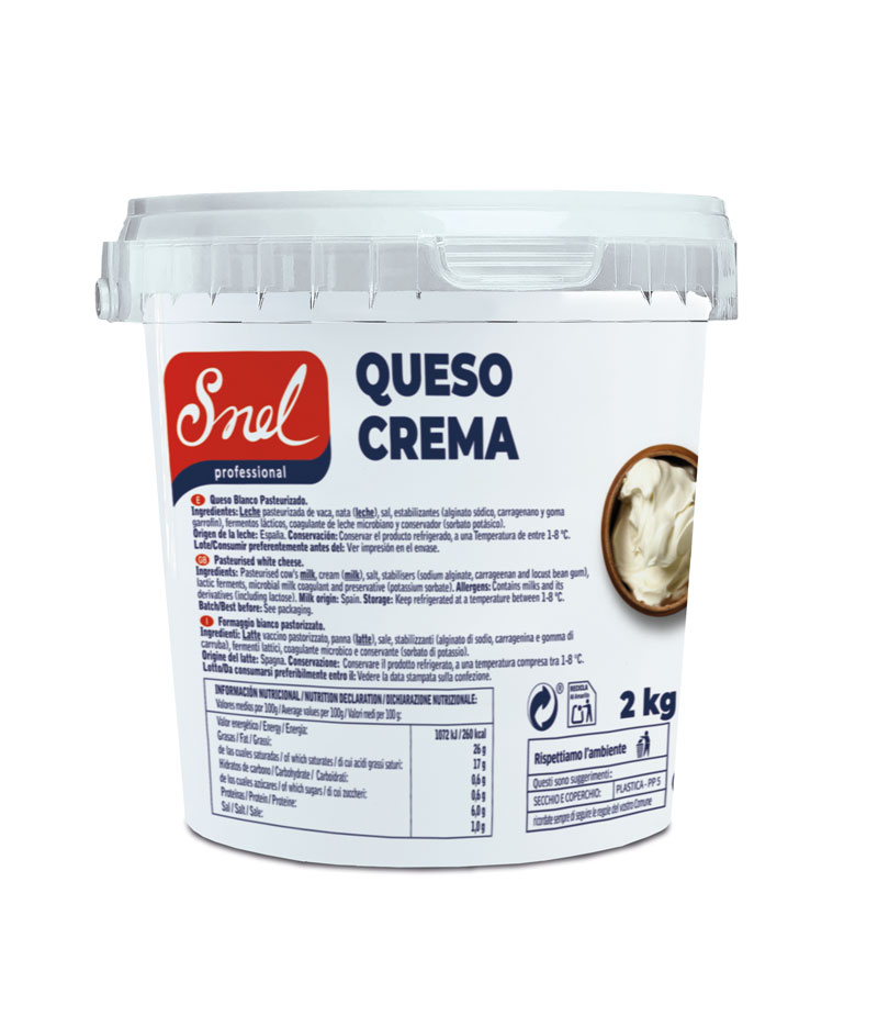 Crema de queso Snel elaborada a partir de leche pasteurizada de vaca y nata, que destaca por su textura suave, homogénea y brillante, perfecta para trabajar en cocina profesional. Su perfil cremoso y su sabor láctico fresco, con un ligero toque ácido, la convierten en una opción muy versátil para múltiples aplicaciones.