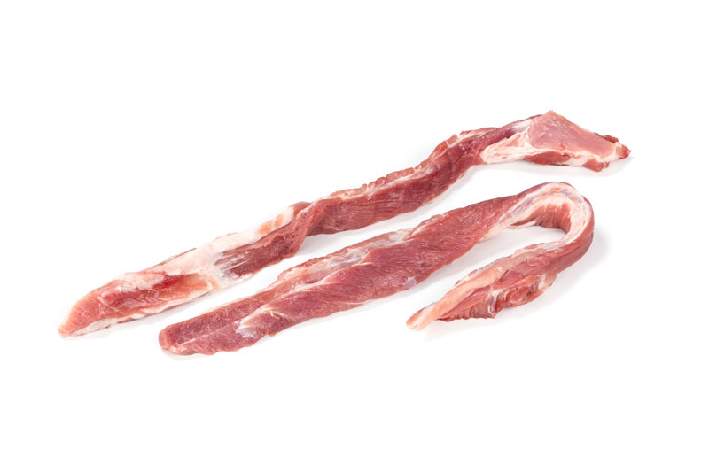 Este pieza tiene forma de cordón que se encuentra ubicado entre las costillas y el lomo del cerdo. Su carne que se caracteriza por ser magra y jugosa.