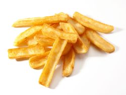 Colocar un sartén con el aceite de oliva y dejar precalentar por 5 minutos, añadir las patatas troceadas y freír 5 minutos. Se tiene que mover rítmicamente durante todo este tiempo para que se dore por todas las caras.