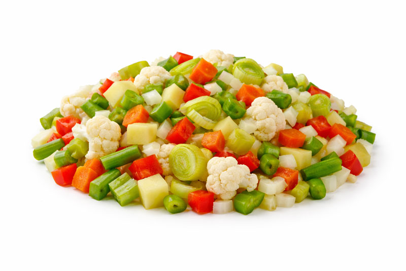Esta mezcla consiste en coliflor, patata, zanahoria, puerro, apio, judía verde, pimiento y cebolla, cortados y listo para incluir en tu caldo favorito.
