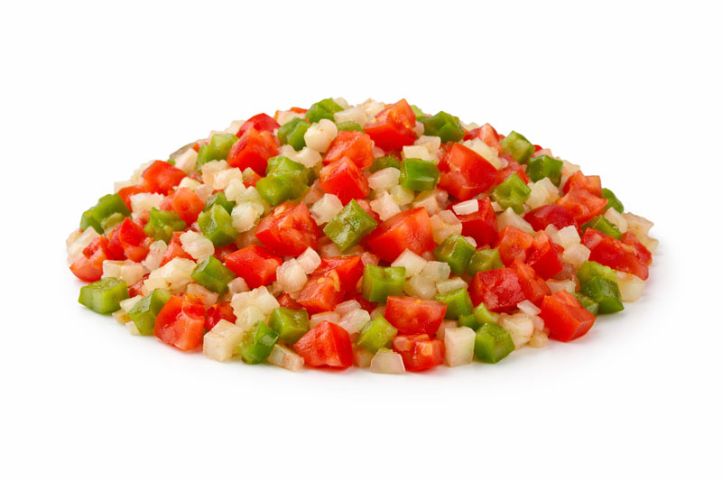 Las verduras para sofrito de Jet Extramar consiste en una mezcla de cebolla, pimiento verde, tomate y ajo cortados en cuadritos, ideales para incluir en la preparación de sofritos para salsas, carnes, guisos o estofados.